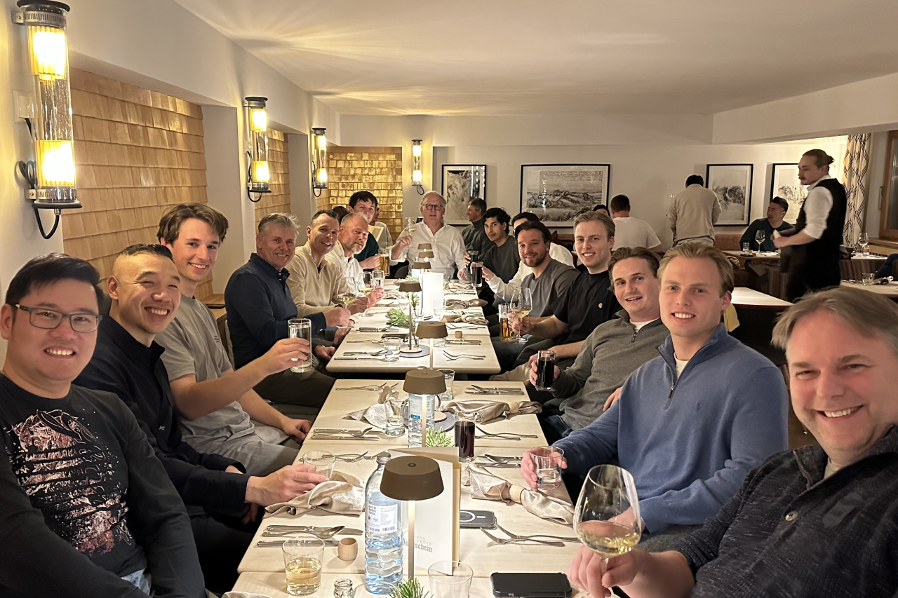 Aan het einde van de middag keerde iedereen moe maar voldaan terug naar het hotel. Tijdens het diner deelden de vijf beginners hun eerste ervaringen – van onverwachte successen tot hilarische misstapjes. Enkele collega’s hadden nog energie voor een potje Hitster, maar daarna riep het bed. De volgende dag stond immers weer een volle wintersportdag op ons te wachten.Sneeuw, sfeer en uitdagende pistes